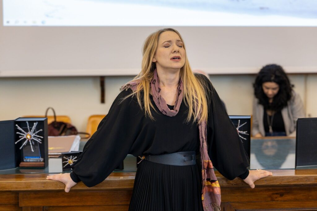 E di nuovo una intensa performance artistica di Priscilla Menin, attrice romana, che interpreta un brano del “Clitennestra” di Hugo Von Hofmannsthal.Consegna il premio Giovanni Rossi Filangieri.