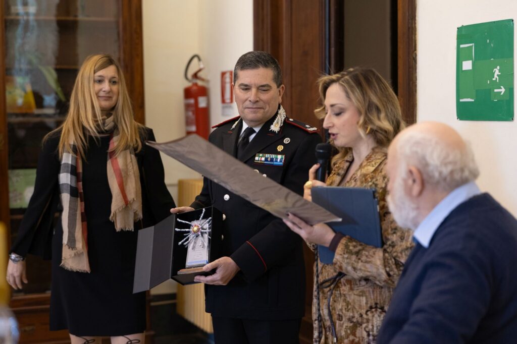 Sempre in tema di ambiente ed energia pulita, in linea con l’attenzione che il Premio ha sempre rivolto all’ambiente ed ai tutori della sicurezza ambientale e pubblica, viene premiato il Comandante Gen. B. Ciro Lungo del Comando Carabinieri Forestale Campania, Coordinatore della task force “Terra dei fuochi”. Riceve il riconoscimento dalle mani di Frau Angelika Edler.
