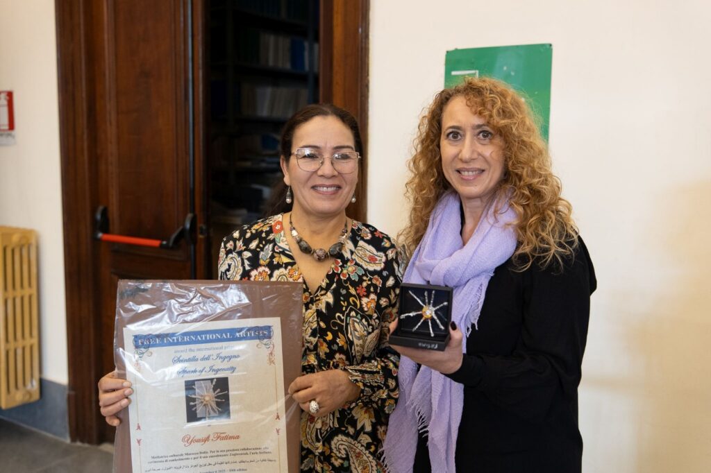 Sarà poi la volta della comunità marocchina di Napoli/Caserta con Youssfi Fatima che saluta le artiste, Touria Majdouline e Ahlam Lemseffer con il «zagharid» (o zaghrouta) il grido berbero.  La lettura della poesia in lingua araba “La farfalla” di Touria Majdouline è accompagnata da un video sul grande schermo poi l’interpretazione in italiano di Eliana Maglione. Segue la consegna dei premi.