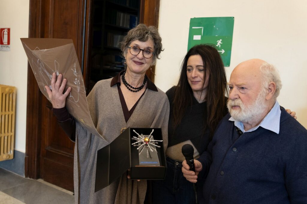 Viene introdotta una artista inglese, Rosalind Keith, che vive e lavora da anni a Firenze, particolarmente cara al maestro Enzo Marino essendo cofondatrice della prima ora dell’International Free Artist. Visibilmente emozionati entrambi, Rosalind nel ricevere il premio e Enzo nel presentarla. Premia la brava Priscilla Menin.